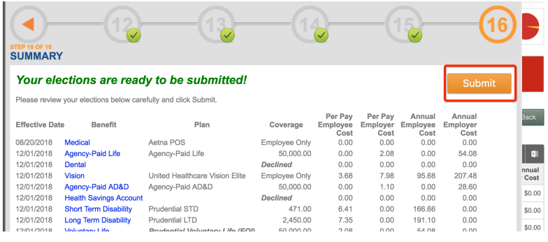 4. After completing the wizard, you will review a summary of your elections. Click the orange