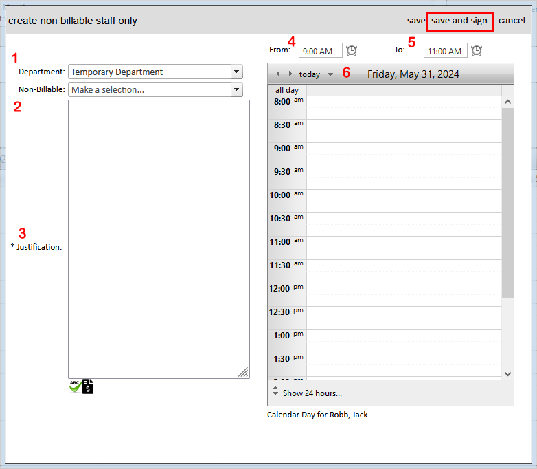 | A menu will appear, asking what kind of record you want to create. Choose “Non-Billable Staff Only.” | |